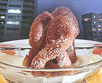 on a spike above the charcoal fire, covered with leaves